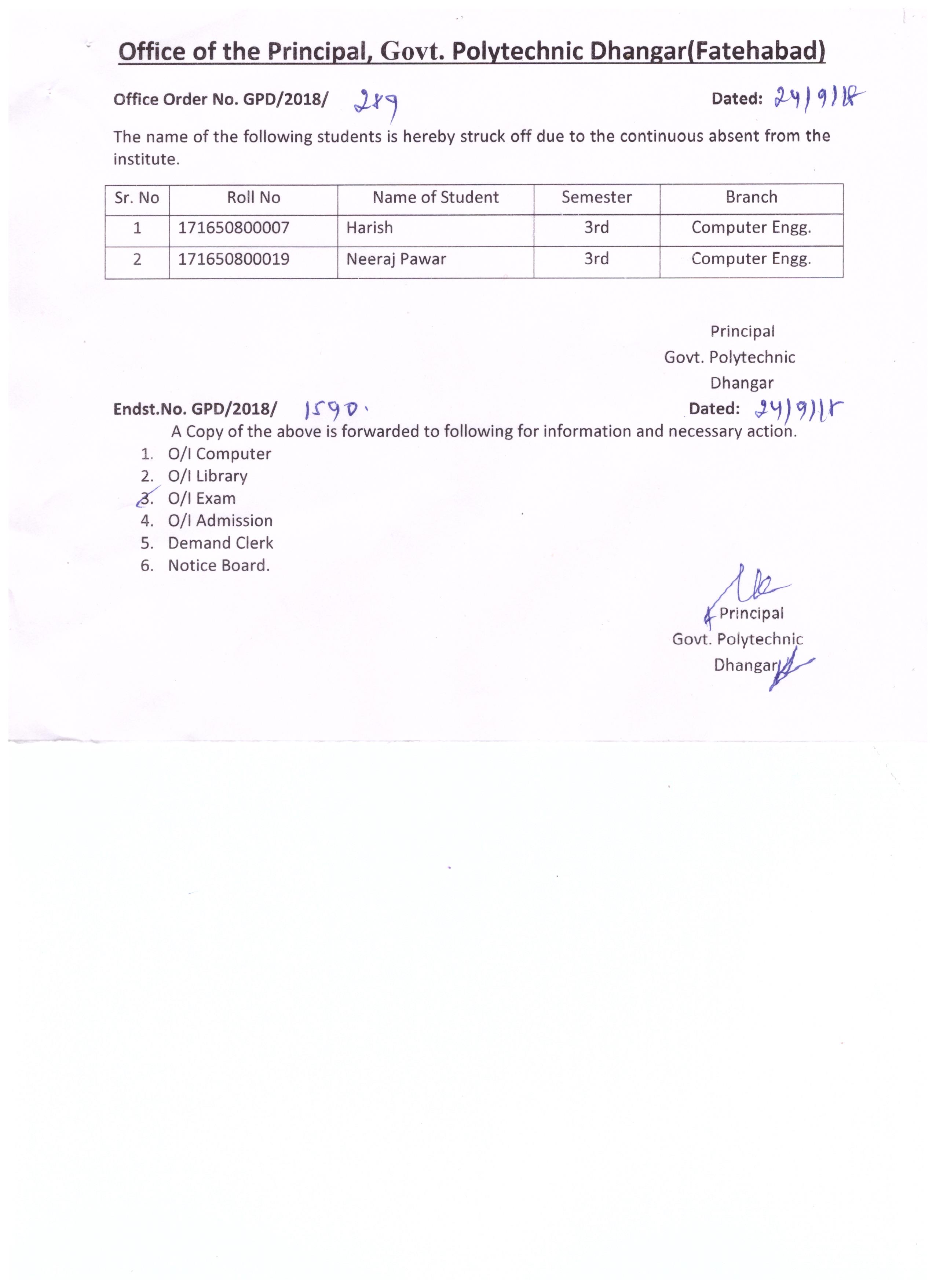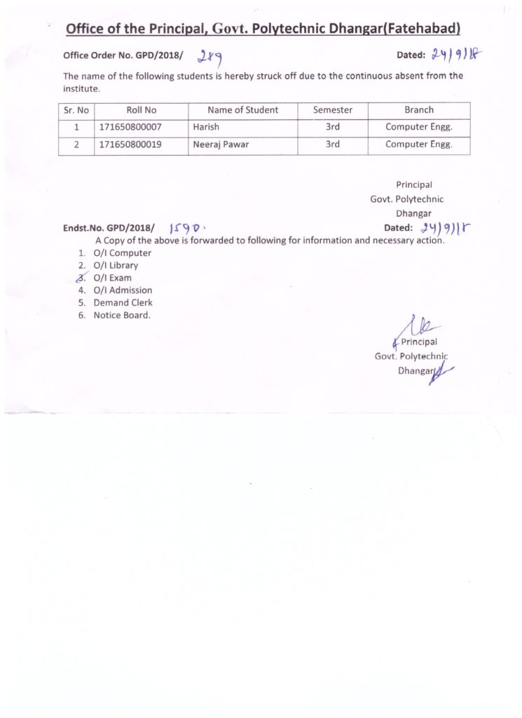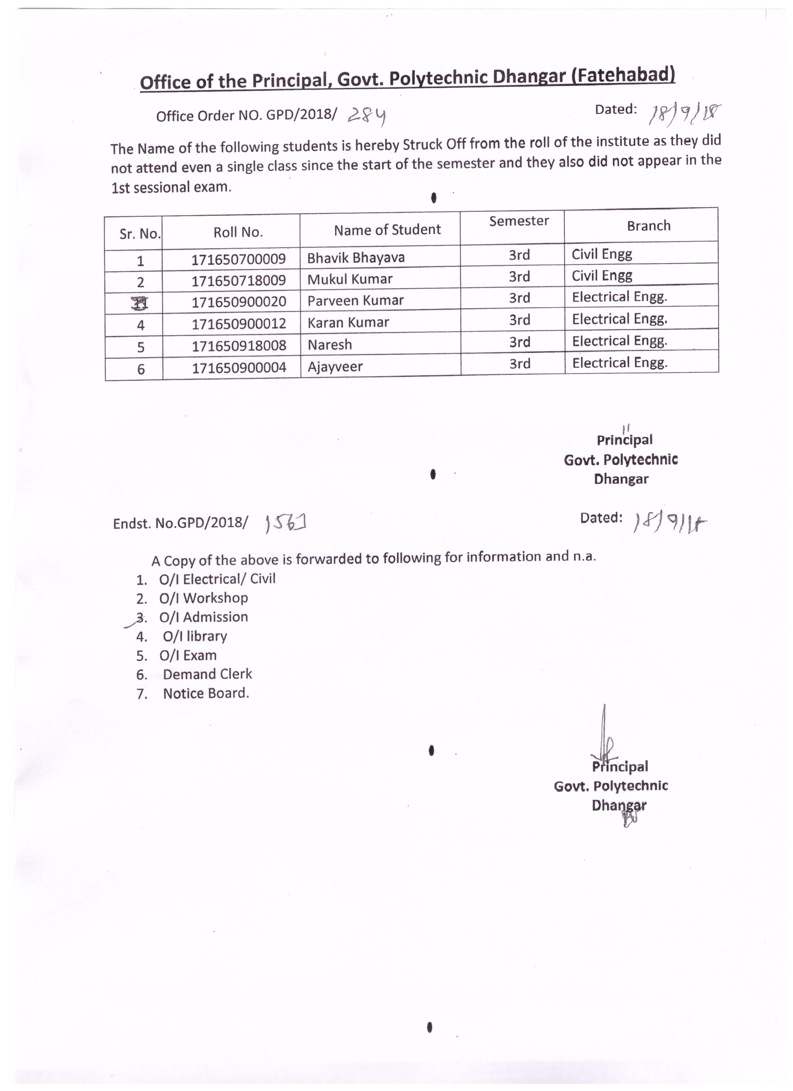The name of the following student is hereby struck off from the roll of the institute as they did not attend even a single class since the start of the semester and they also did not appear in the 1st sessional exam.