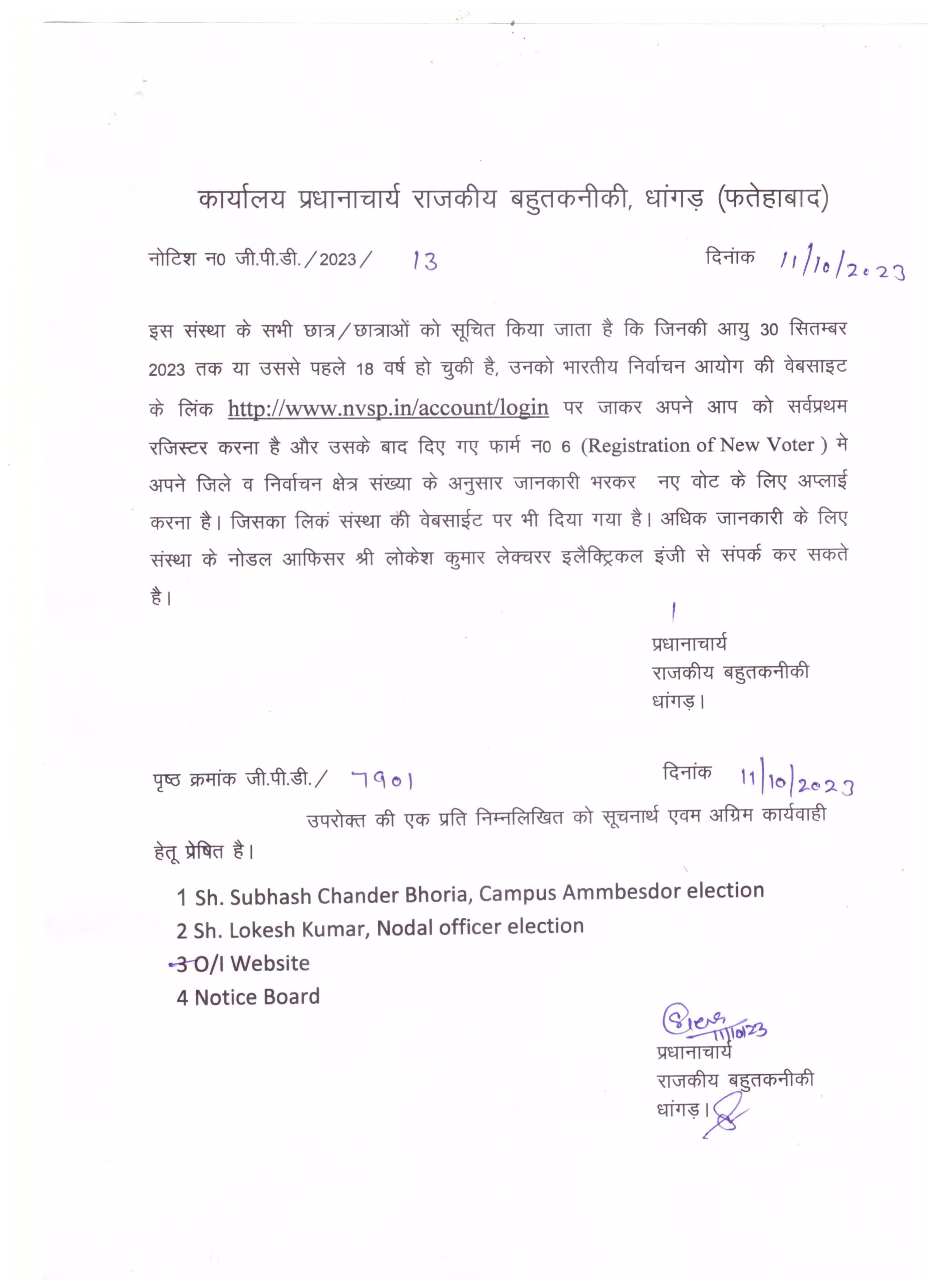 Govt. Polytechnic Dhangar, 8 Km Stone NH-9, Hisar Road, Dhangar (Fatehabad)